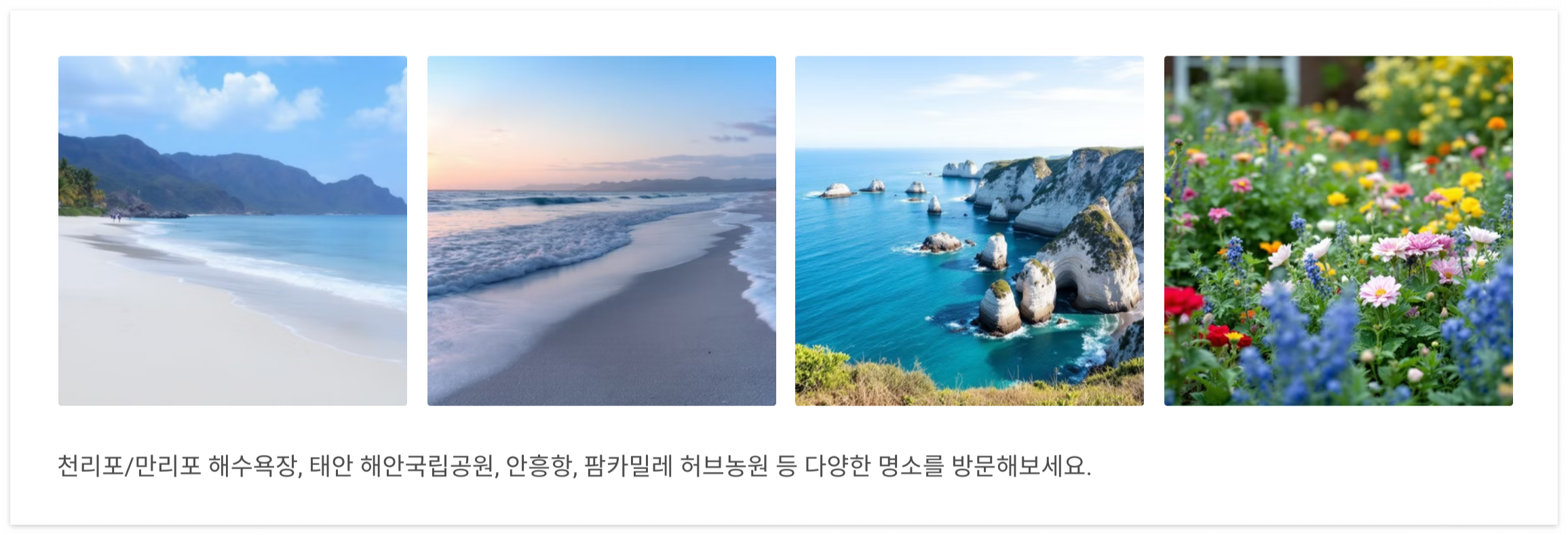 태안의 다양한 매력을 경험하며 더욱 풍성한 여행을 만들어 보세요.