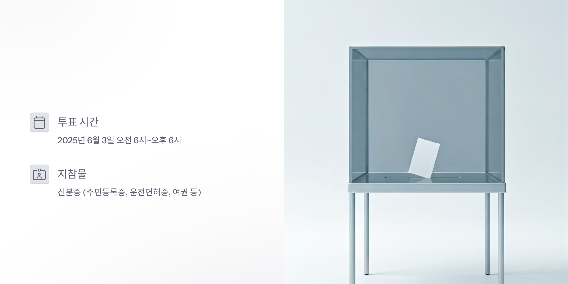 - 투표 시간 : 2025년 6월 3일 오전 6시부터 오후 6시까지